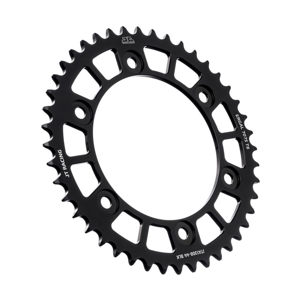 JT sprockets are made using only the best available materials. Aviation-grade 7075-T6 aluminium alloy for lightweight competition sprockets, SCM420 chromoly steel alloy for front sprockets, and we are the only sprocket manufacturer using the ultra-durable high carbon C49 steel for rear sprockets.