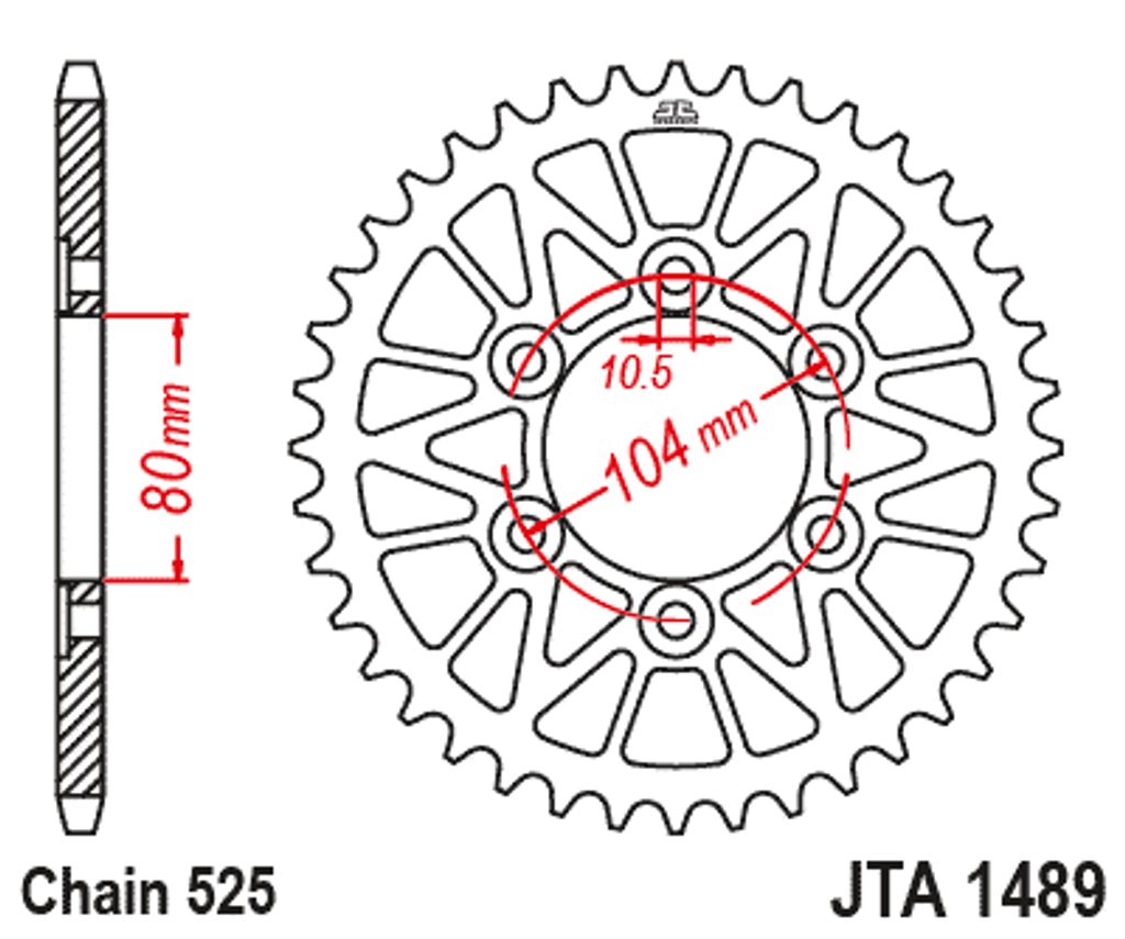 Aizmugurējais ALU ķēdes zobrats JT JTA 1489-44BLK 44T, 525 Melns