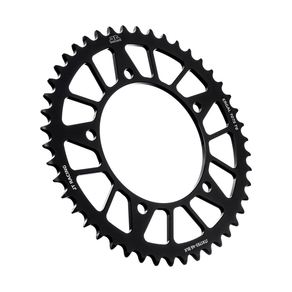 JT sprockets are made using only the best available materials. Aviation-grade 7075-T6 aluminium alloy for lightweight competition sprockets, SCM420 chromoly steel alloy for front sprockets, and we are the only sprocket manufacturer using the ultra-durable high carbon C49 steel for rear sprockets.