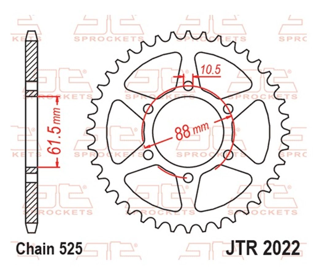 Aizmugurējais zobrats JT JTR 2022-38 38T, 525