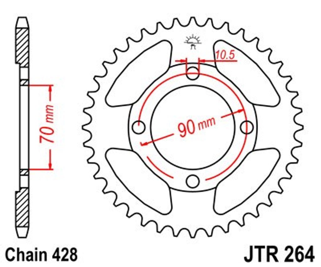 Aizmugurējais zobrats JT JTR 264-45 45T, 428