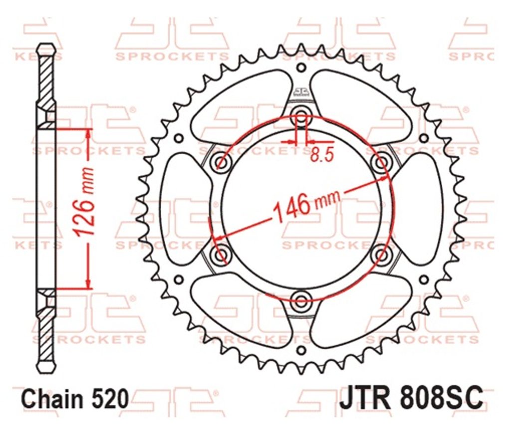 Aizmugurējais zobrats JT JTR 808-47SC 47T, 520 Viegls pašattīrošs