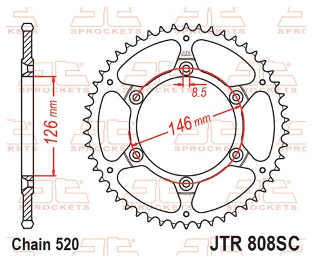 Aizmugurējais zobrats JT JTR 808-51SC 51T, 520 Viegls pašattīrošs