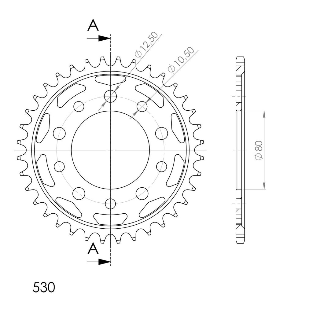 Stronger teeth for up to 10% longer chainkit lifetime. Rear sprocket 36z, chain 530. Vairāk informācijas