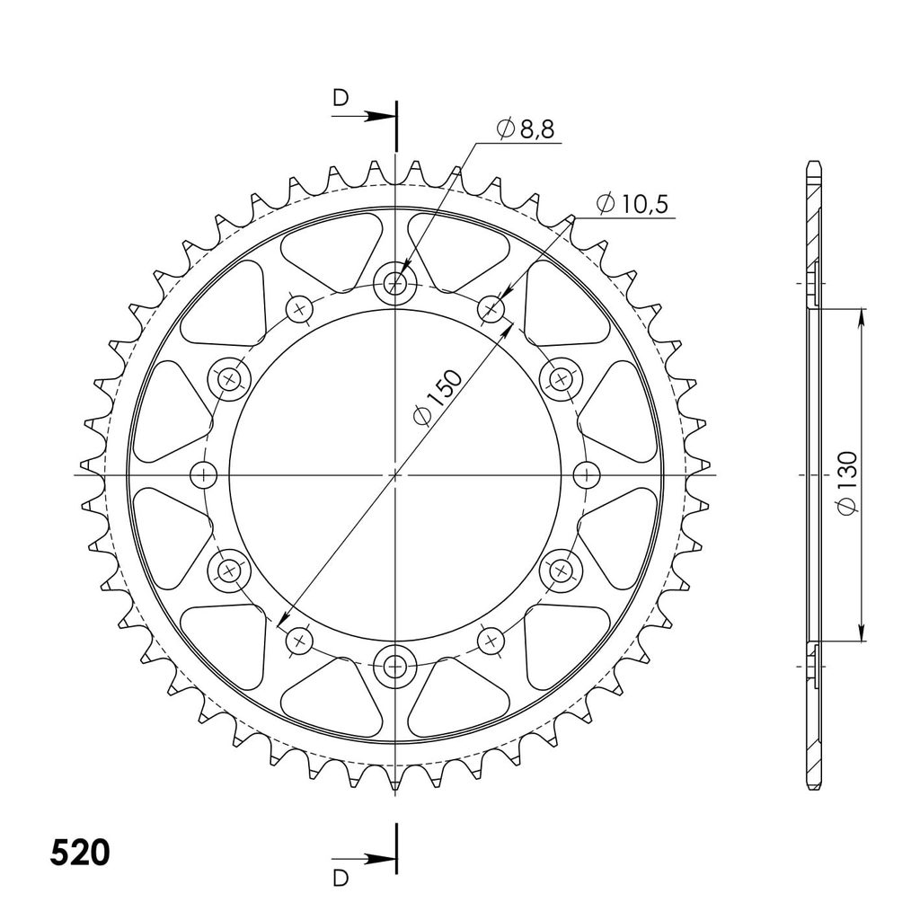 Stronger teeth for up to 10% longer chainkit lifetime. Rear sprocket 48z, chain 520. Vairāk informācijas