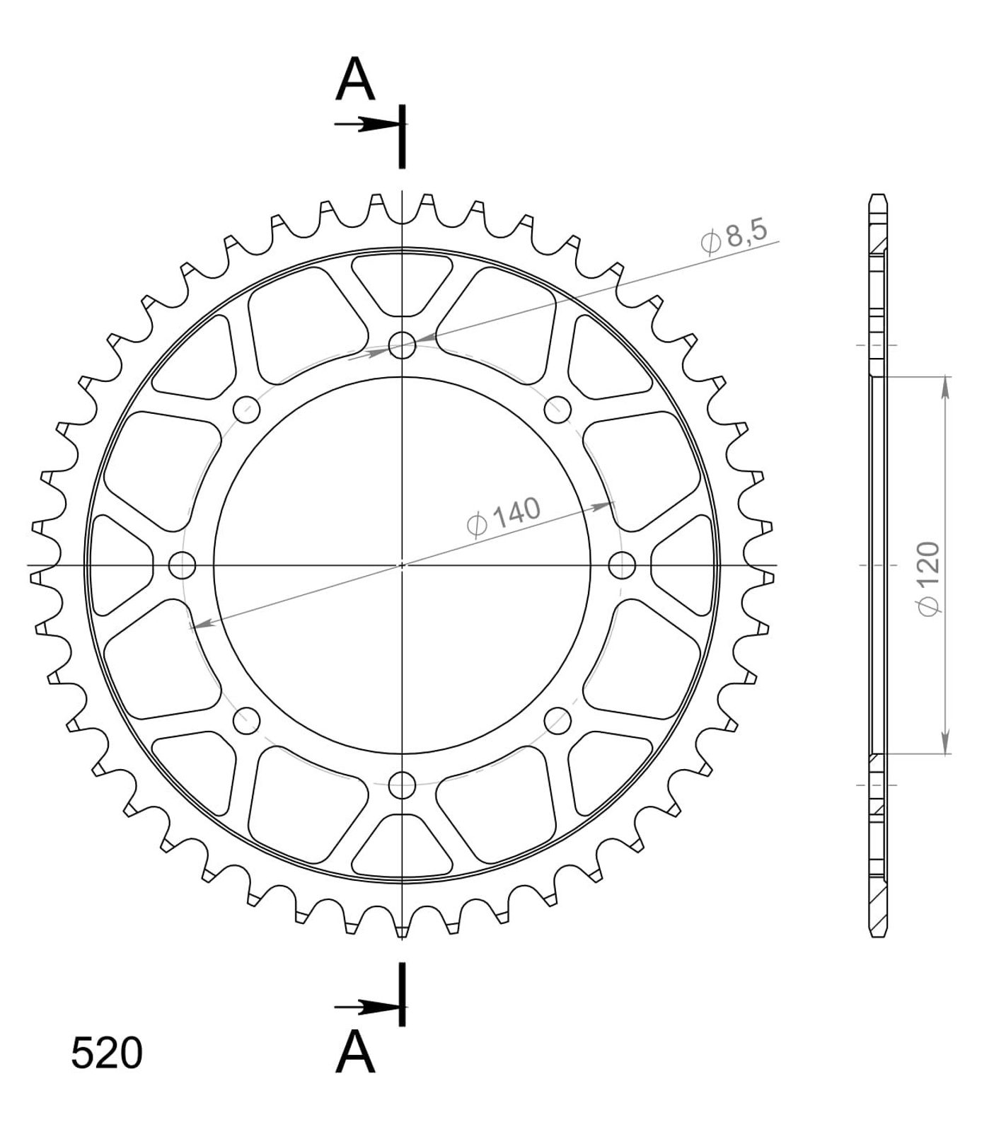 Stronger teeth for up to 10% longer chainkit lifetime. Rear sprocket 45z, chain 520. Vairāk informācijas