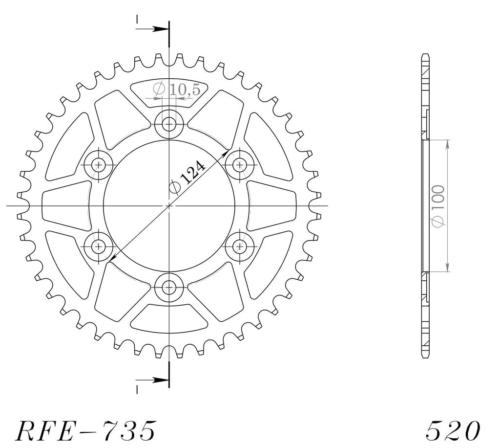 Aizmugurējais zobrats SUPERSPROX RFE-735:44-BLK melns/pelēks 44T, 520