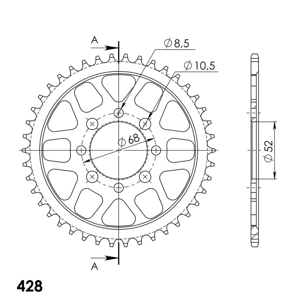 Stronger teeth for up to 10% longer chainkit lifetime. Rear sprocket 42z, chain 428. Vairāk informācijas