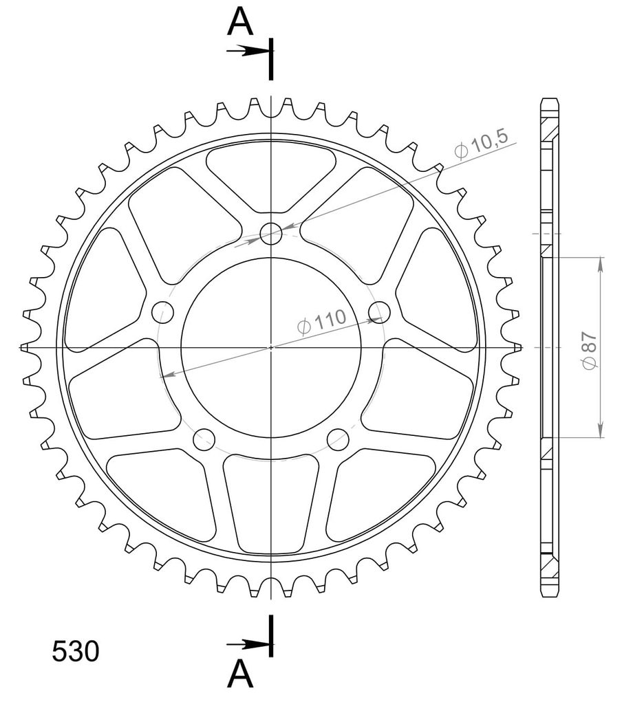 Stronger teeth for up to 10% longer chainkit lifetime. Rear sprocket 46z, chain 530. Vairāk informācijas