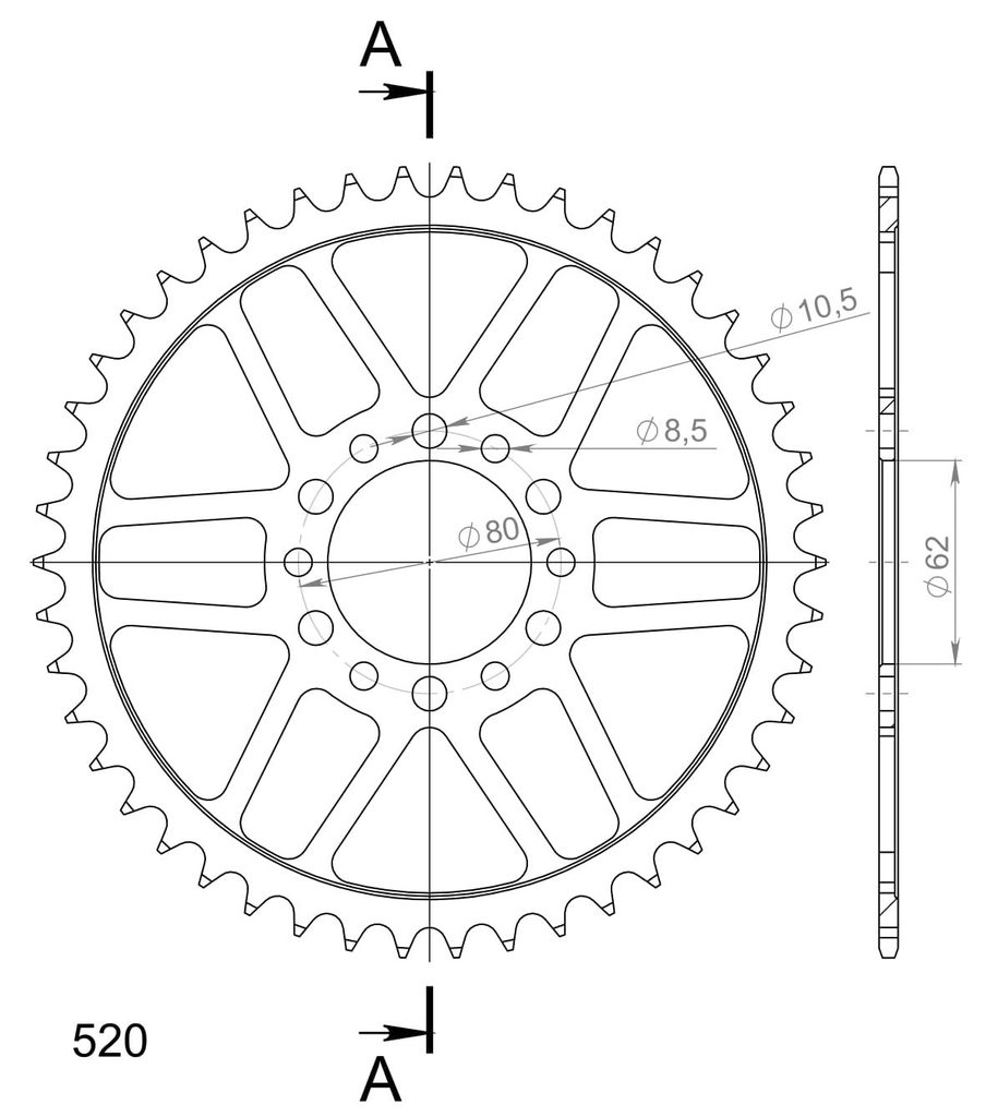 Stronger teeth for up to 10% longer chainkit lifetime. Rear sprocket 46z, chain 520. Vairāk informācijas