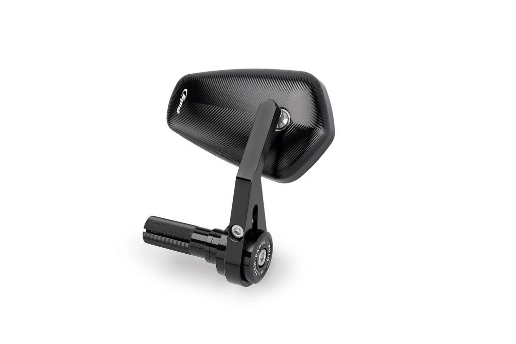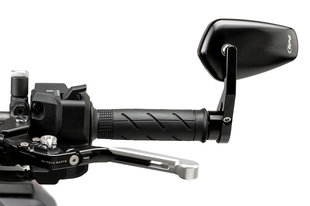 It is mounted at the top of the end of the handlebar -upward or laterally- and is equipped with a convex mirror to improve the rider’s vision.