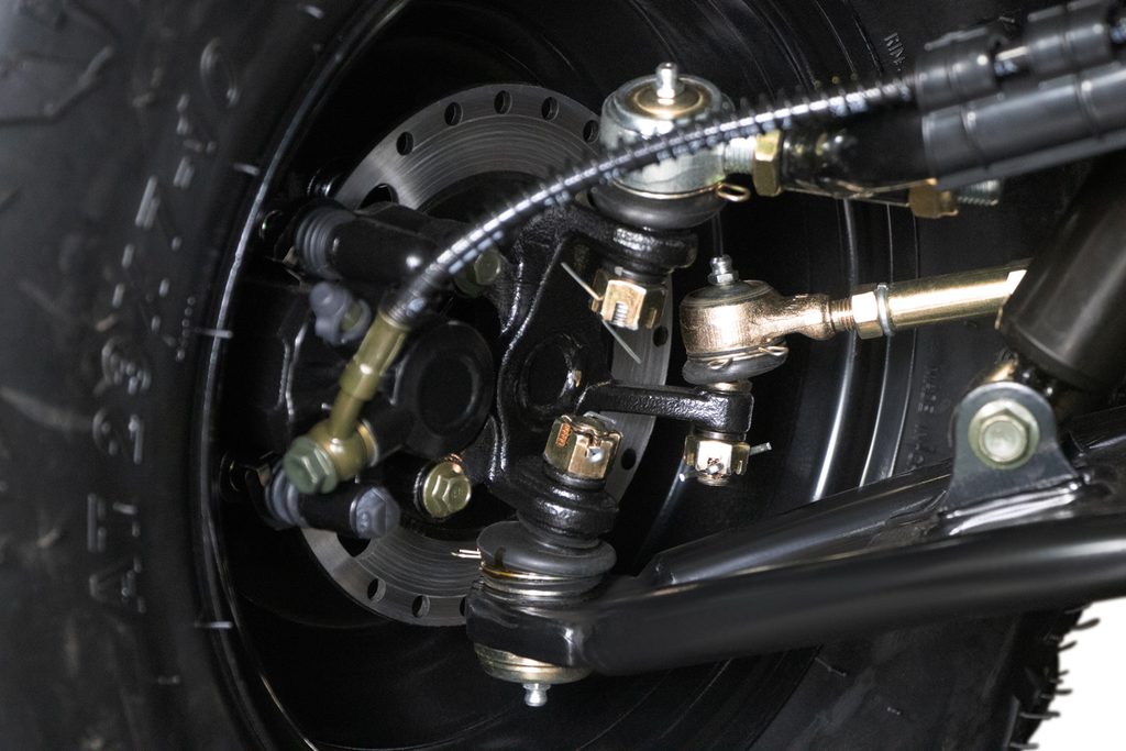 - Hidrauliska kājas bremze aizmugurē, hidrauliska rokas bremze priekšā