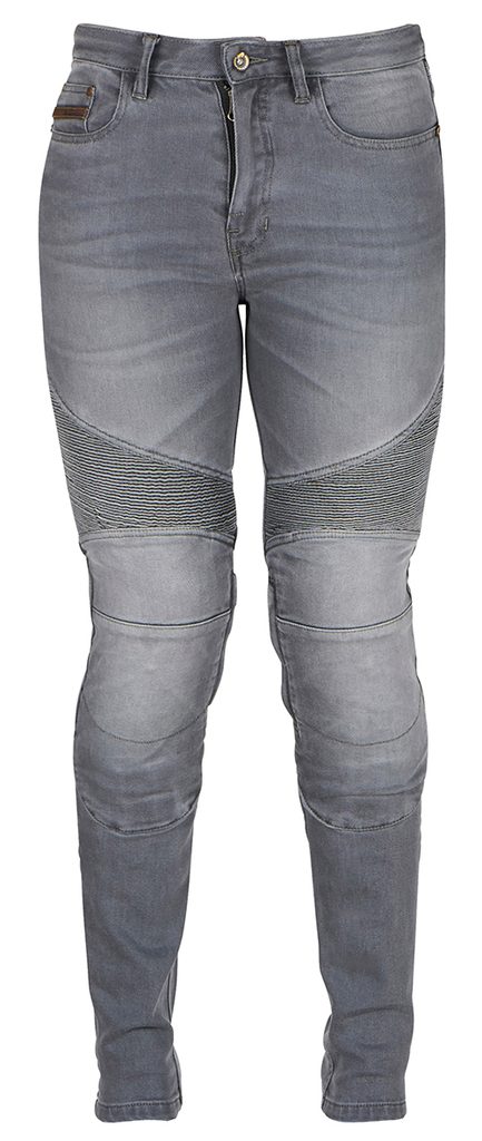 Furygan Jean Lady Purdey pelēkā krāsā ir sieviešu motociklistu džinsi ar modernu piegriezumu, kas pielāgots sievietes augumam. Tie apvieno stilīgu izskatu ar komfortu un praktiskumu ikdienas braukšanai pilsētā.