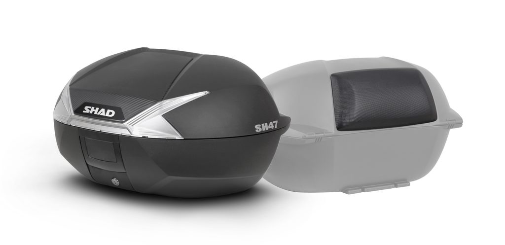SH47 je špičkový kufr navržený v Barceloně a postavený na agresivním aerodynamickém tvaru. Má moderní a elegantní vzhled. Jeho velikost je ideální pro pohyb po městě nebo pro delší jízdy, což umožňuje jeho přizpůsobení jak na skútry, tak na střední a velké motocykly.