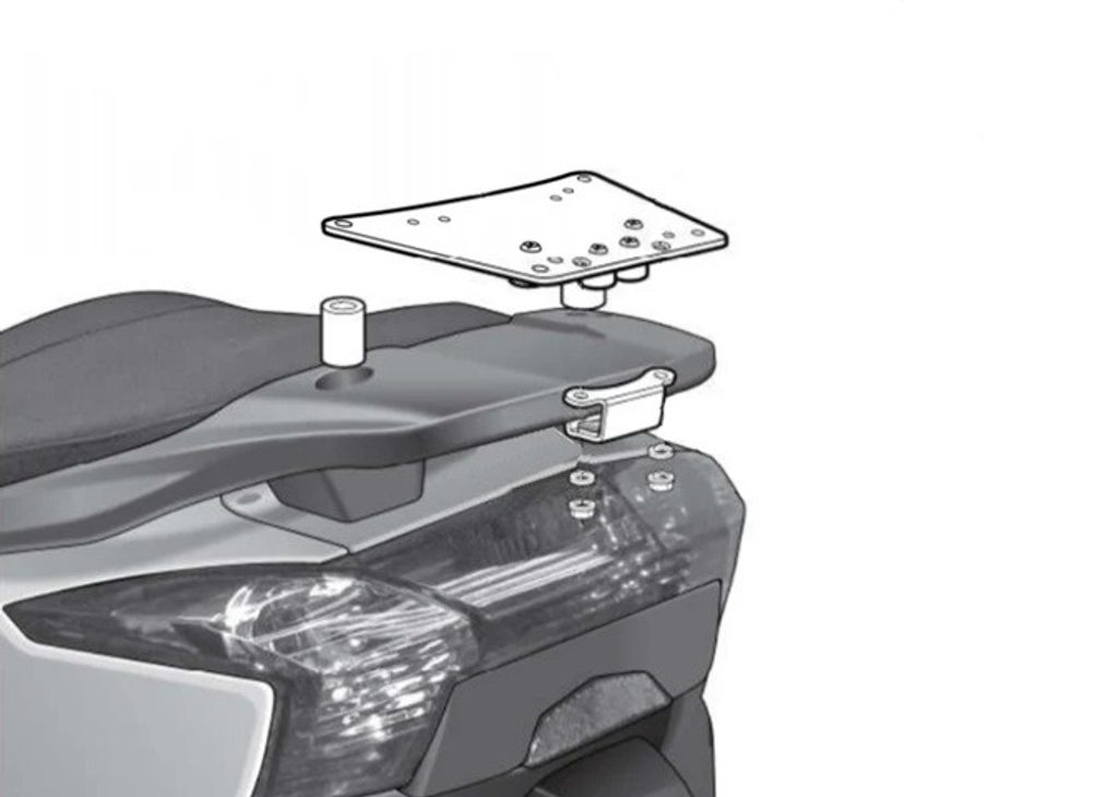To mount the top case onto the bike it is necessary to add to the top fitting, the plate included in the SHAD cases (except for TR48/TR37).