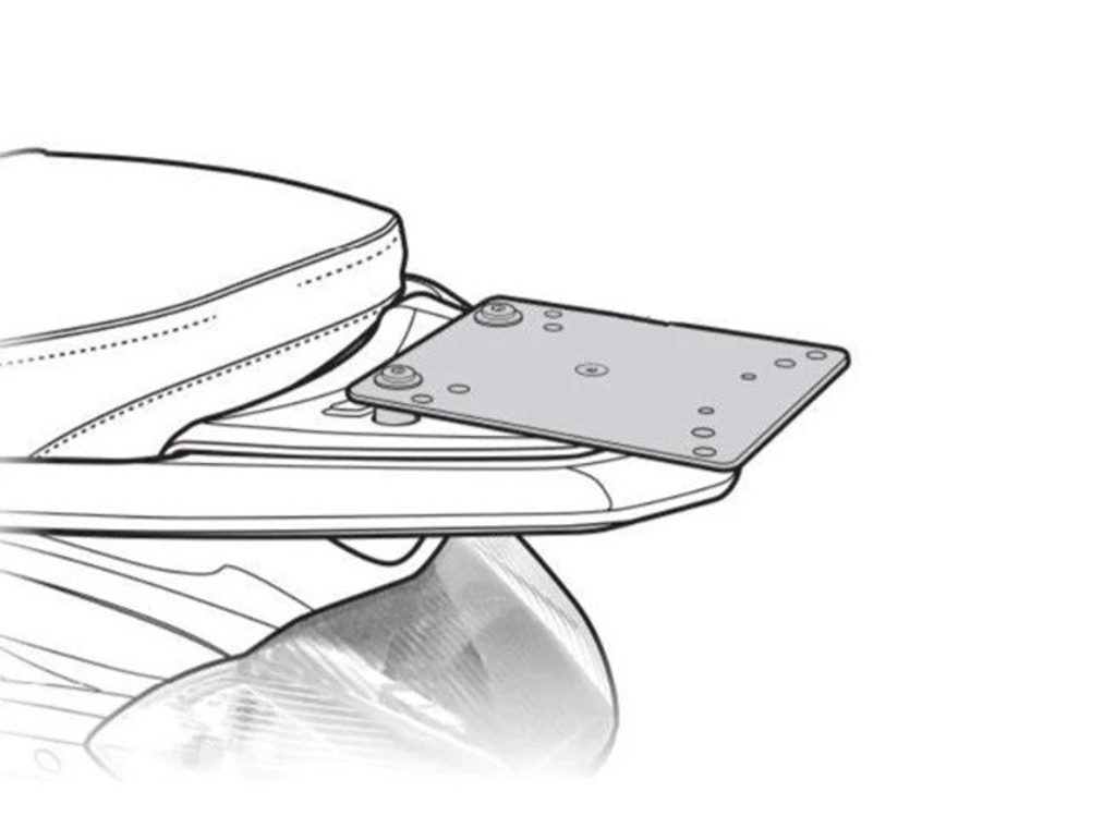 To mount the top case onto the bike it is necessary to add to the top fitting, the plate included in the SHAD cases (except for TR48/TR37).