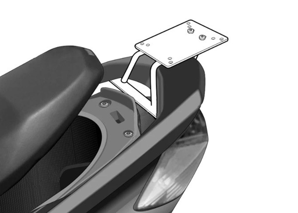 To mount the top case onto the bike it is necessary to add to the top fitting, the plate included in the SHAD cases (except for TR48/TR37).
