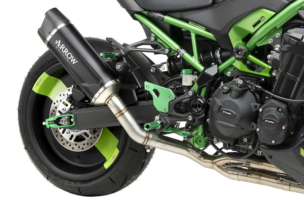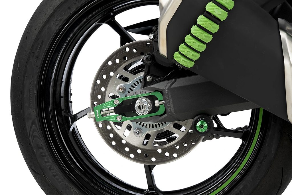 It integrates perfectly into the hollow of the swingarm of each motorcycle, and its anodized in a color combination that allows you to choose the option that best suits your motorcycle aesthetically.