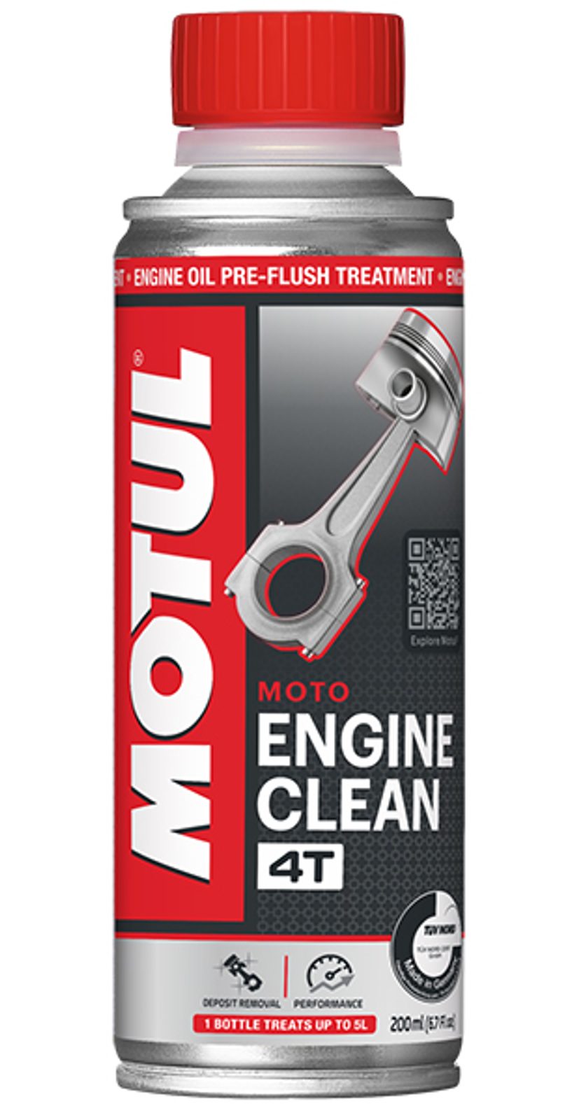 Dzinēja tīrīšanas piedeva, ko izmanto pirms eļļas nomaiņas. Īpaši izstrādāta 4-taktu dzinējiem motociklos, ATV, UTV, JŪTV un sniega motociklos. Atjauno dzinēja saspiešanu, iznīcinot melnā mucas, oglekļa nogulsnes un lakas. Aizsargā dzinēju, ilgāk saglabā jauno eļļu tīru.
