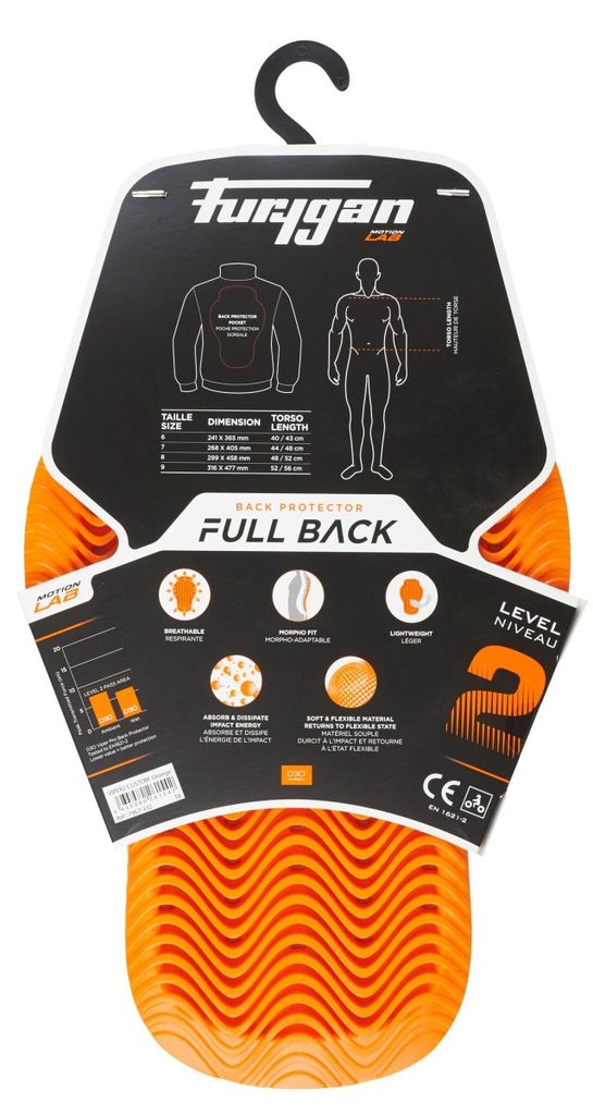 Savietojams ar Furygan jakām ar muguras aizsargu kabatu.