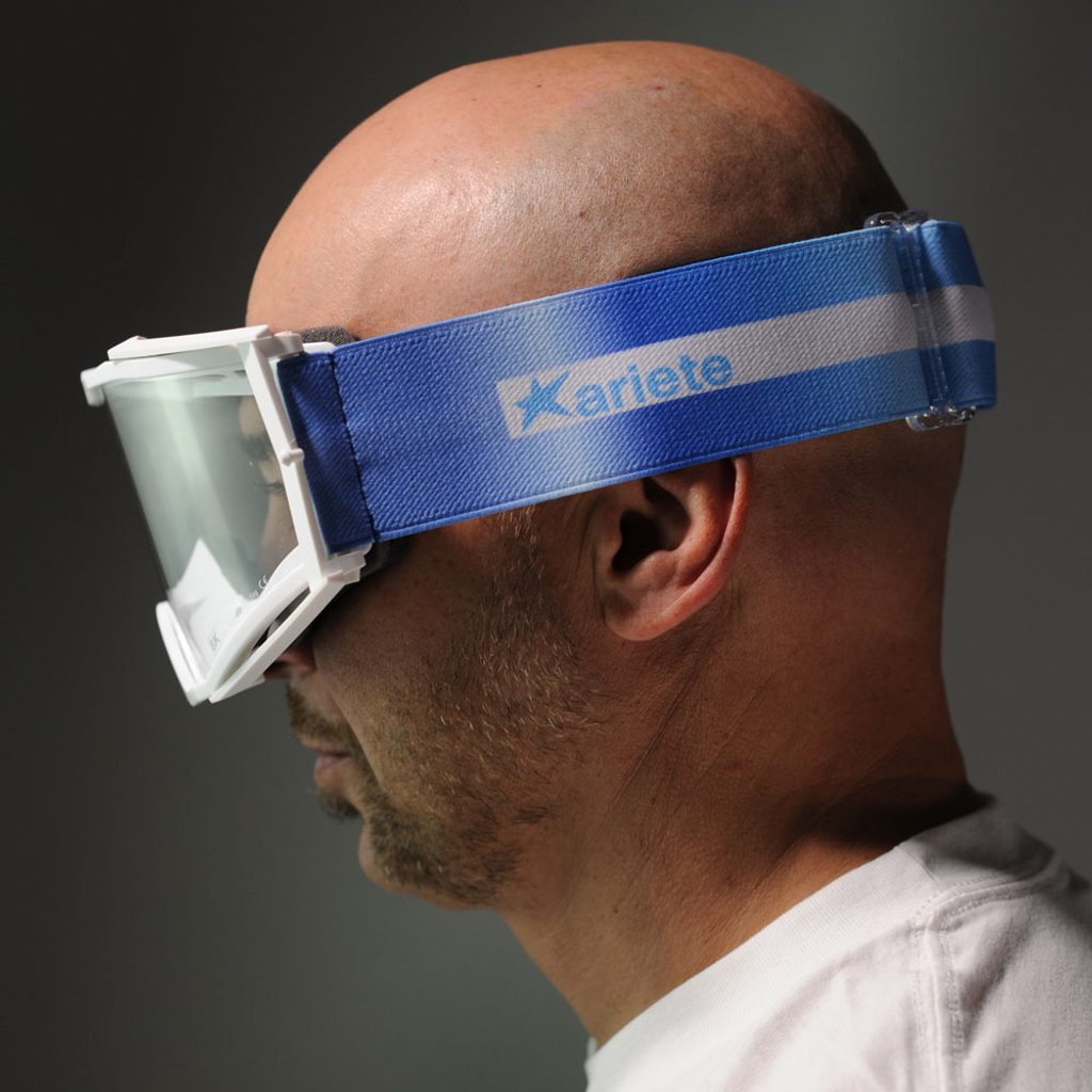 Ariete technicians have developed a frame that allows a wide field of view both laterally and vertically. This feature makes a vital contribution to rider safety. 8K, Mudmax Puravida, Adrenaline and RC goggles are O.T.G. – over the glasses models.