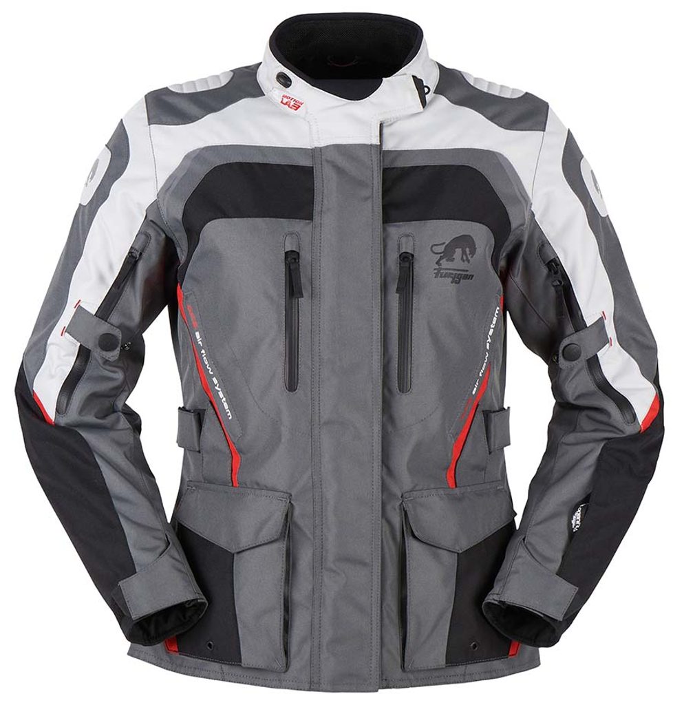 Furygan Jack Apalaches Lady Black/Grey/Red ir stilīgs un funkcionāls motociklu apģērbs ar aizsardzību.