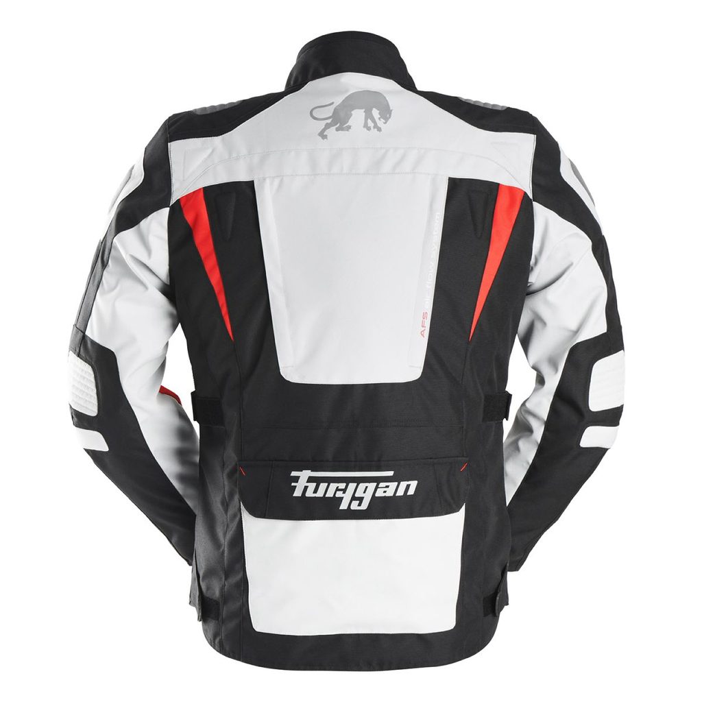 Furygan Jack Apalaches Black-Pearl-Red ir stilīgs un funkcionāls motociklu apģērbs ar aizsardzību.