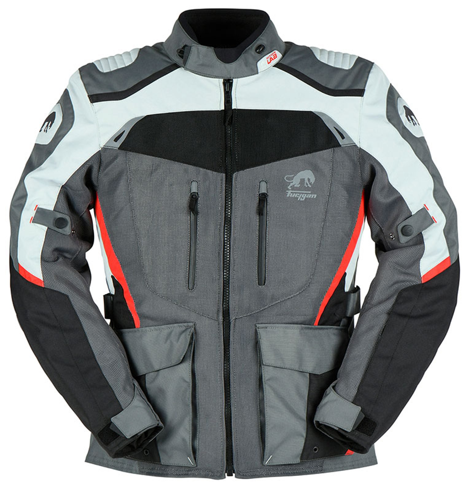 Furygan Jack Apalaches Vented 2en1 Black-Grey-Red ir stilīgs un funkcionāls motociklu apģērbs ar aizsardzību.