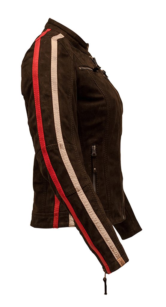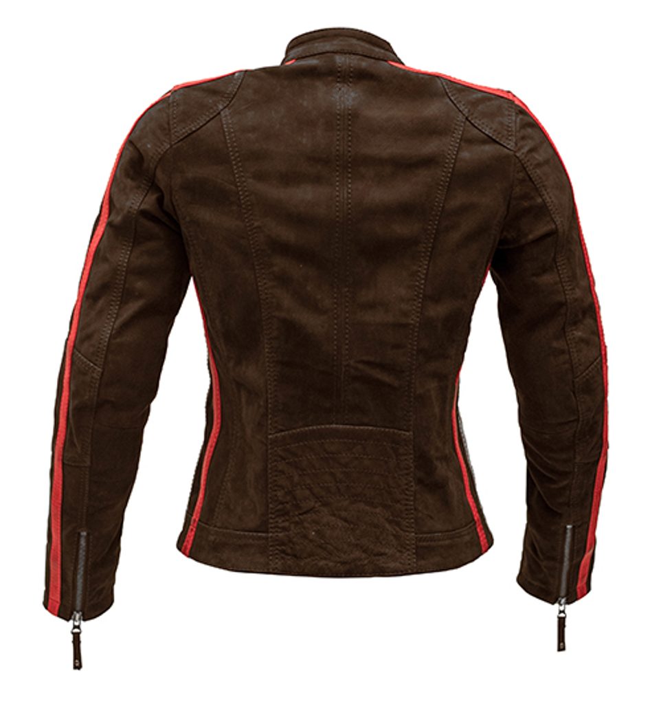 Rusty Stitches Jack Uma Nubuck ir eleganta un sievišķīga moto jaka, kas apvieno klasisku dizainu ar augsta līmeņa aizsardzību.