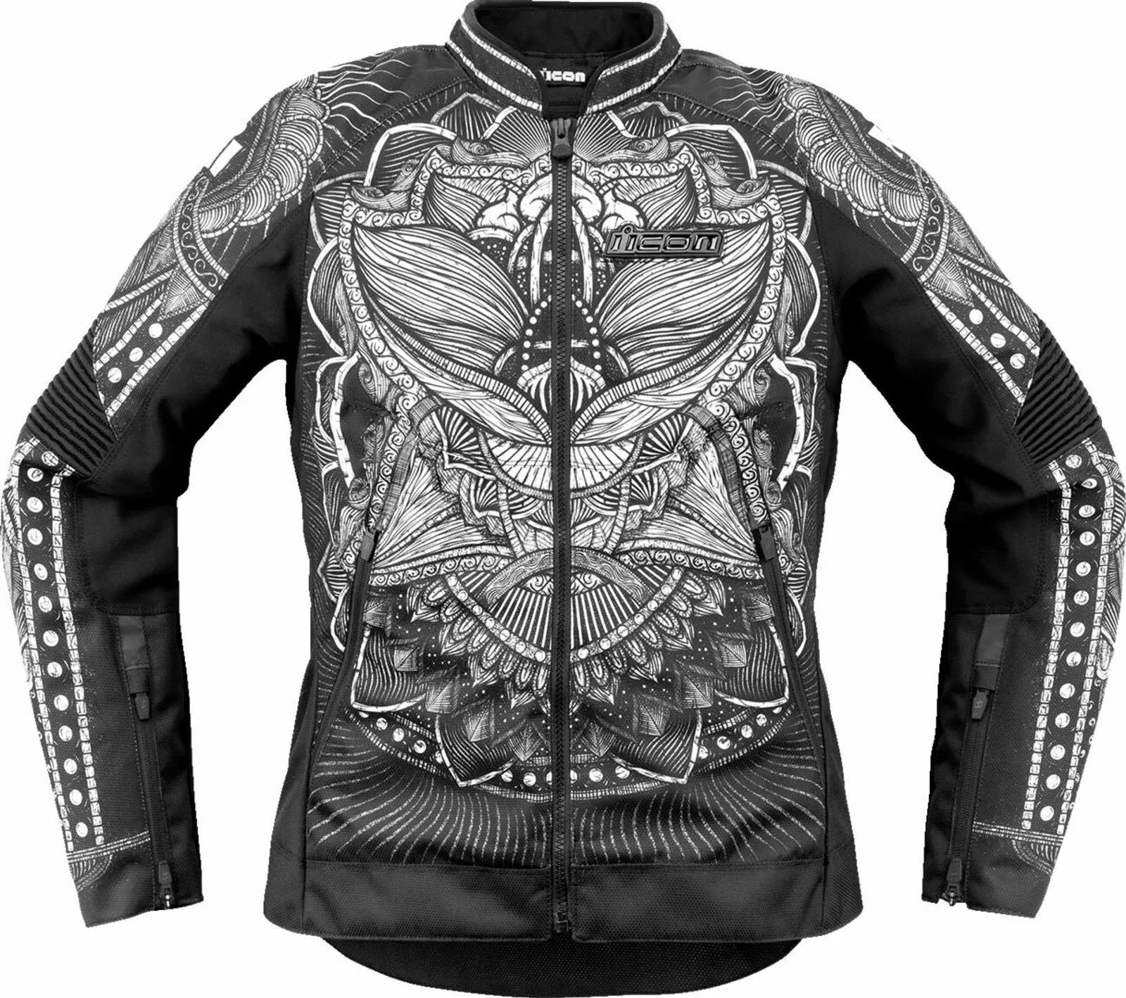 • Sieviešu Overlord3 Noble™ jaka ar grafiskām zīmējumiem, kas apdrukāti uz 1680D un 300D poliestera šasijas un iekšējiem 300D poliestera pastiprinājumiem