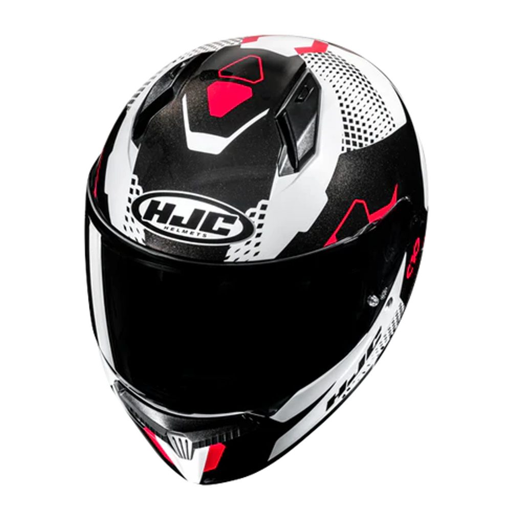 HJC C10 ASPA MC1 ir pilnsejas motocikla ķivere, kas apvieno modernu dizainu ar augstu drošības līmeni un komfortu. Ar sarkanu un melnu krāsu kombināciju, šī ķivere piedāvā izteiksmīgu un dinamisku izskatu, kas izceļas uz ceļa.