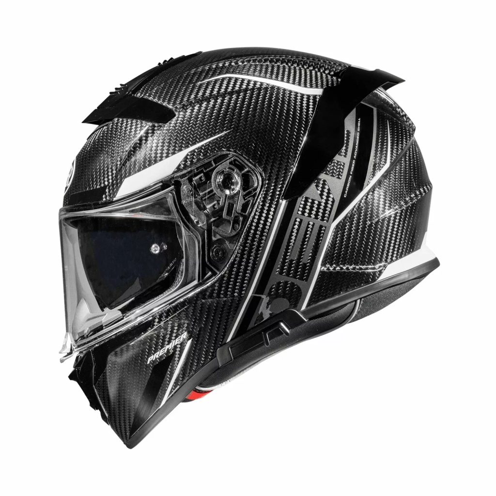 • Vizieris ir pret skrāpējumiem polikarbonāts, un ķivere ir aprīkota ar nelielu iekšējo tumšo ievelkamo vizieri, kas nodrošina optimālu braukšanu jebkuros laikapstākļos un gaismas apstākļos.