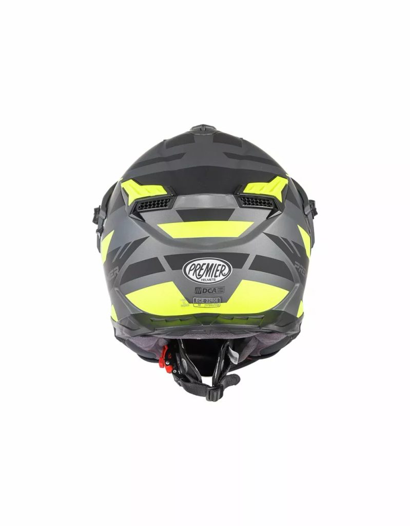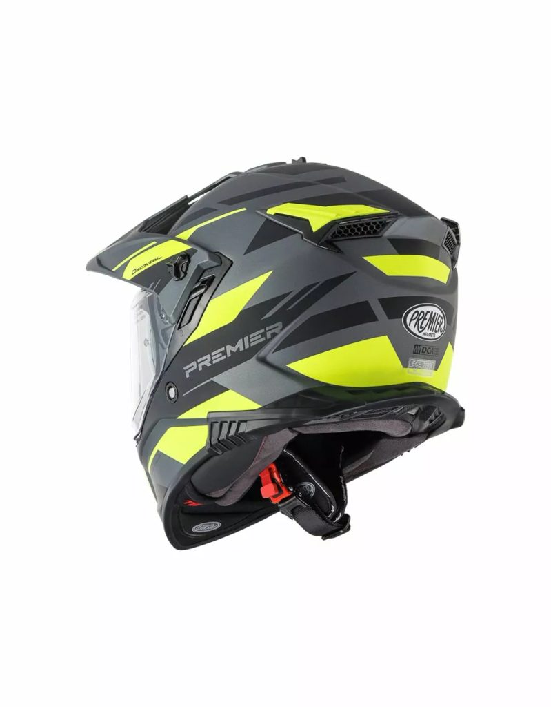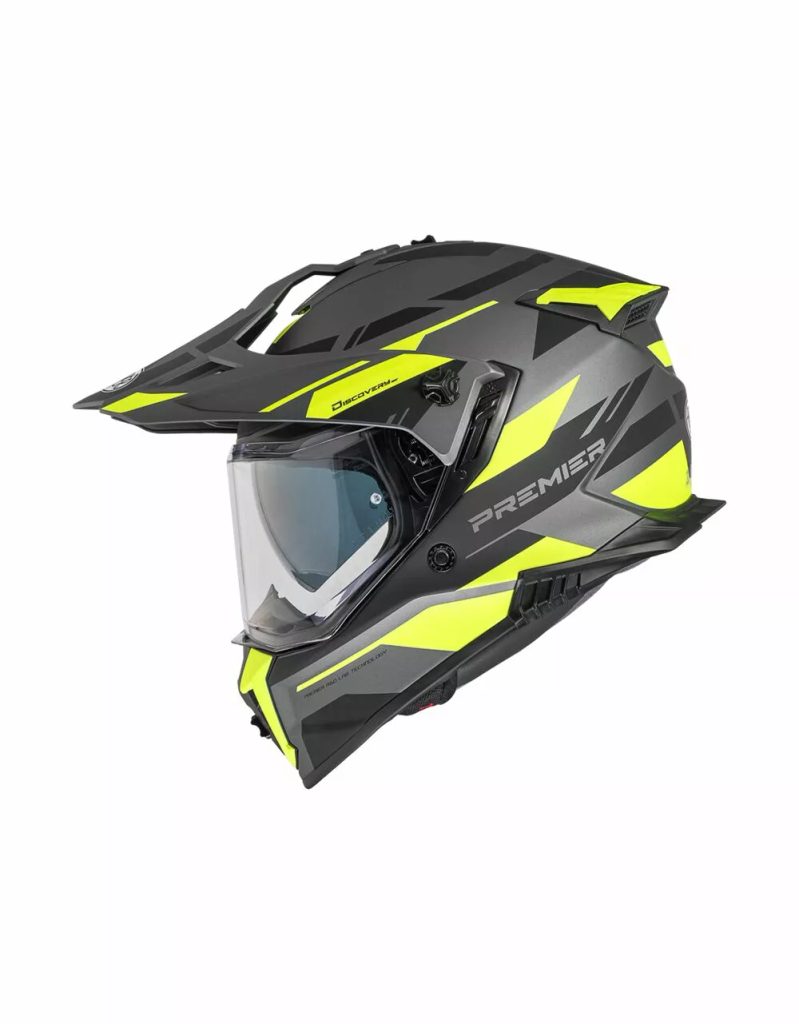 • Skrāpējumiem izturīgs polikarbonāta vizieris ir aprīkots arī ar tumšu iekšējo vizieri optimālai braukšanai jebkuros laikapstākļos un gaismas apstākļos. Šis vizieris tiek darbināts ar sviru ķiveres kreisajā pusē.