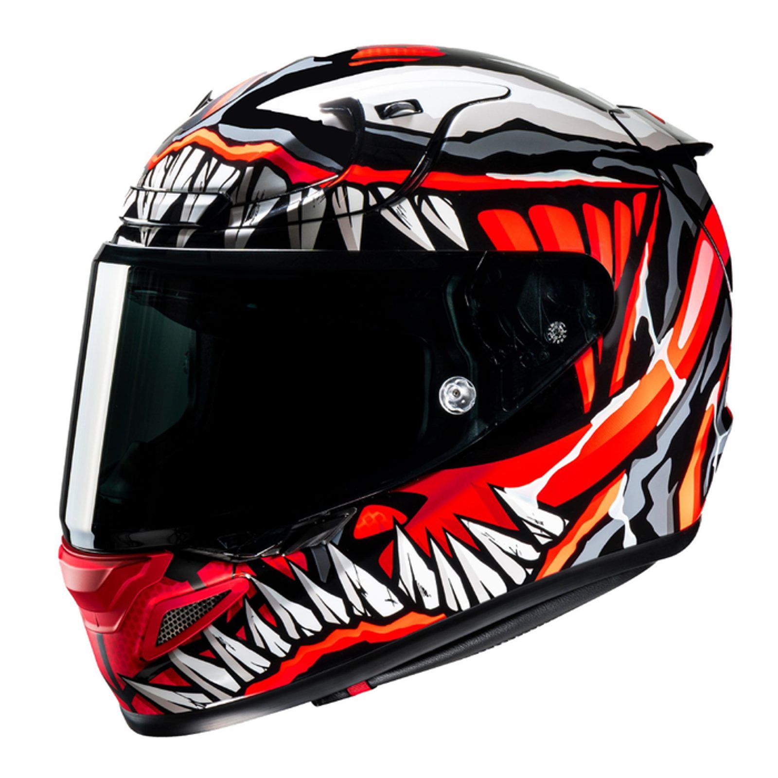 HJC RPHA12 MAXIMIZED VENOM MARVEL MC1SF ir limitēta izlaiduma augstākās klases motoķivere, kas apvieno HJC tehnoloģisko precizitāti ar Marvel ikoniskā tēla – Venom – dramatisko un tumšo dizainu. Tā ir ideāla izvēle motociklistiem, kas vēlas apvienot sacīkšu veiktspēju, agresīvu izskatu un unikālu identitāti.