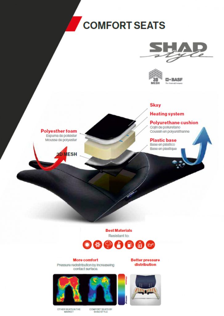 Seat designed and developed exclusively for the HONDA CBR 600F model, with a specific design that enhances ergonomics and comfort, increased contact surface for pilot and passenger, and with 3D-MESH technology.