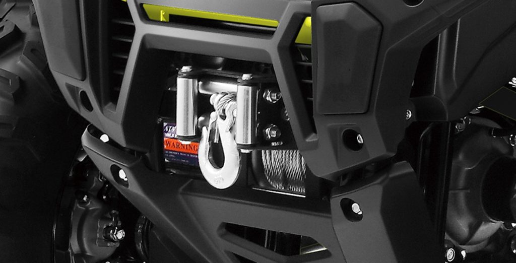 LCD readings, rear and front LED lights, hand guards, backrest of the passenger seat, hook with electronic connector, electric winch with steel cable, power steering, T3b registration, mudguards (additional equipment), light alloy rims, 12V connection el. for devices + USB