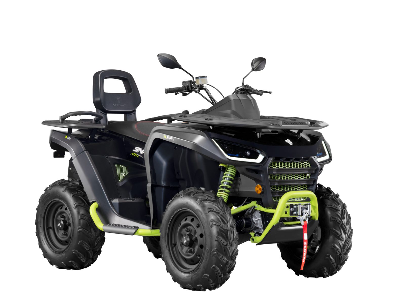 Visi Segway Powersports 570cc kubatūras kvadracikli aprīkoti ar hidrauliskajām disku bremzēm, vinču, 44 Zs / 48 N.m jaudu, kā arī iespējams izvēlēties 2WD vai 4WD piedziņu ar abu tiltu bloķēšanu.