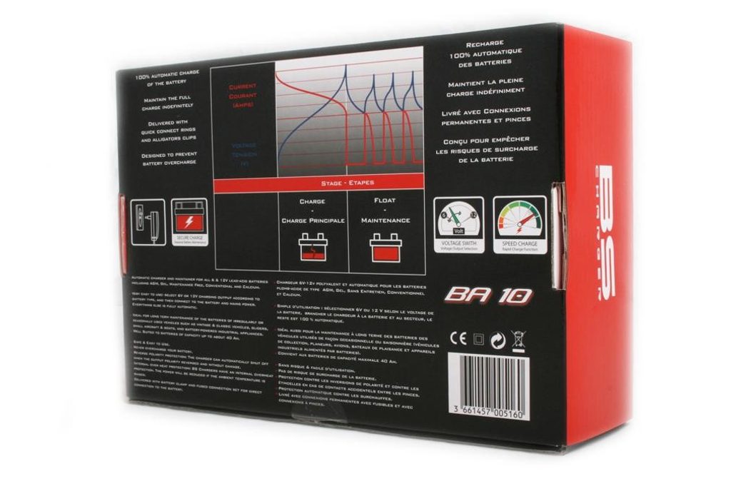 Designed for lead acid & lithium batteries, BS Charger BS 10 is an automatic 6V/12V smart battery charger and maintainer rated at 1A. Road trip friendly, light & compact, it is suitable for batteries up to 20Ah.