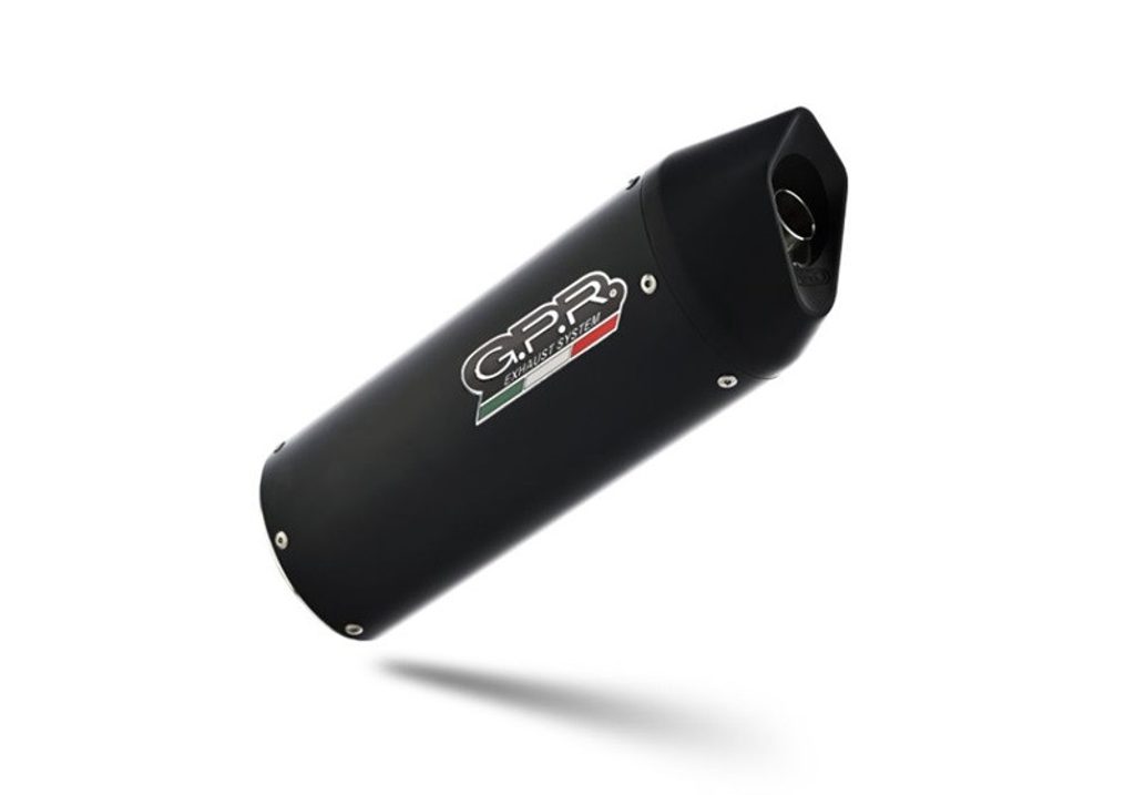 GPR's Furore Nero silencer has a black aluminum body, with avional caps made through CNC machining. It has a ceramic finish that withstands high temperatures, with an elliptical shape that measures 90mm x120mm.