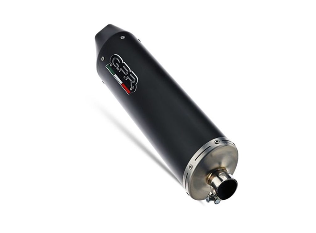 GPR's Furore Nero silencer has a black aluminum body, with avional caps made through CNC machining. It has a ceramic finish that withstands high temperatures, with an elliptical shape that measures 90mm x120mm.