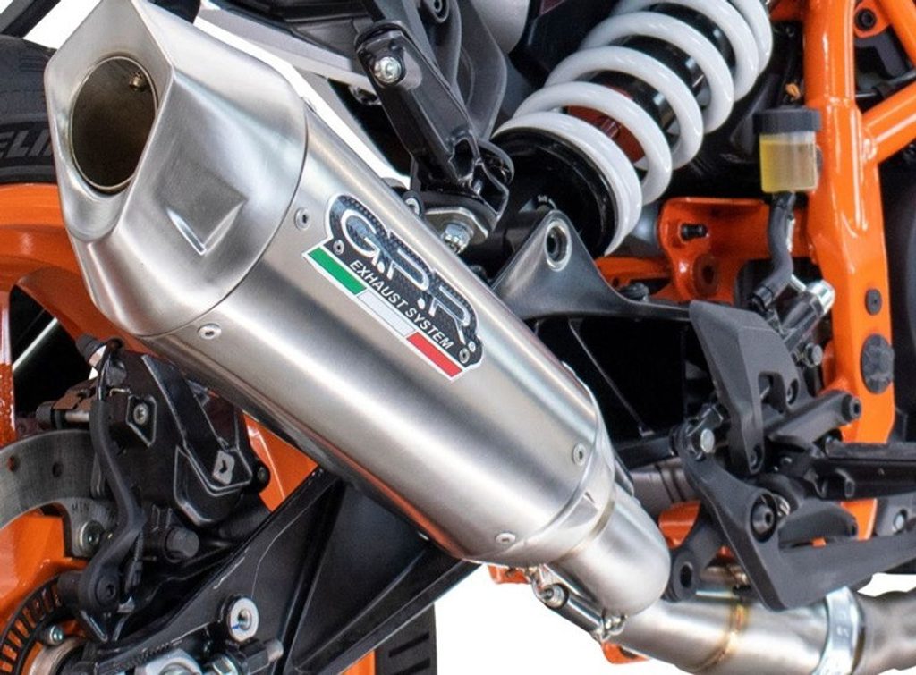 Silencer GP-REVO Titanium serie, it is made with an CONICAL-shaped body diam. 90mm x 130mm in titanium with a thickness of 0.8mm and a perforated INOX inside tube sp. 0.8mm. The bottoms are conical and painted in black color, equipped with dbkiller and specific anchoring bracket, it is an extremely light item, it's hyper-performing, with a modern design and a deep but not invasive sound in compliance with the legal limits. Hyper Furore has been developed thanks to investments in the Moto2 and Moto3 world championships and is one of the new GPR designs in collection.