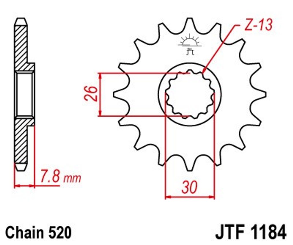 Priekšējais zobrats JT JTF 1184-18 18T, 520
