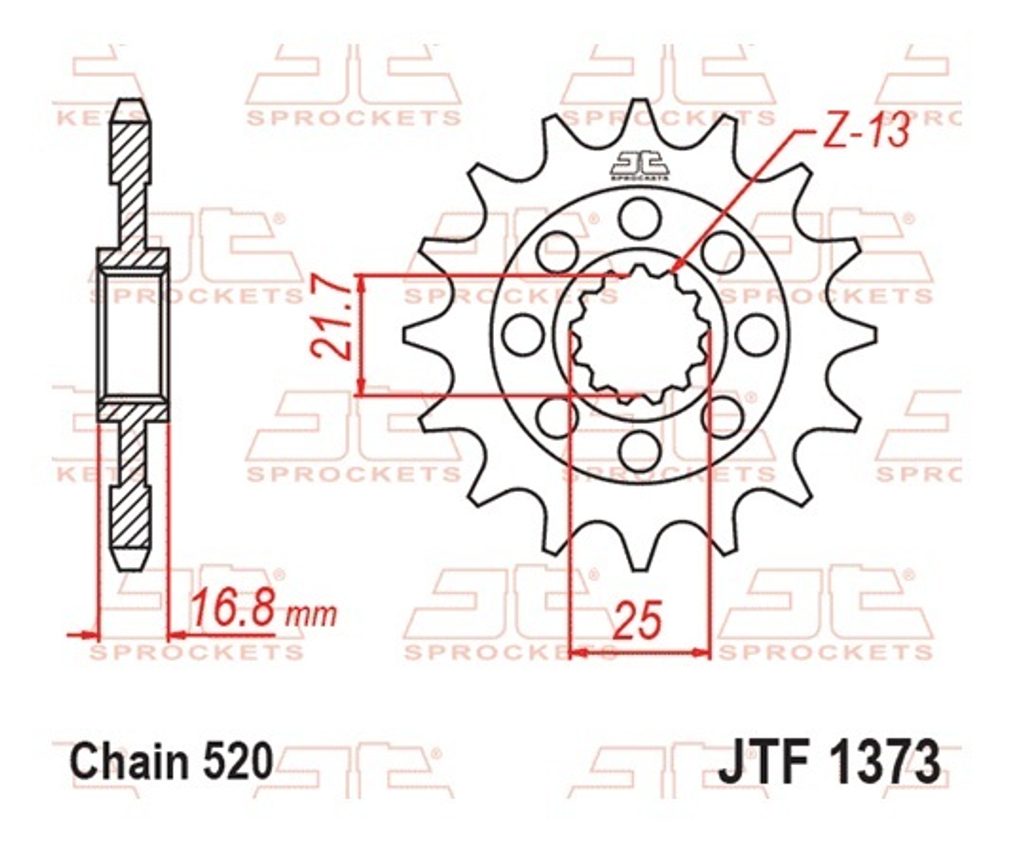 Priekšējais zobrats JT JTF 1373-17RB 17T, 520 piedziņas gumijas