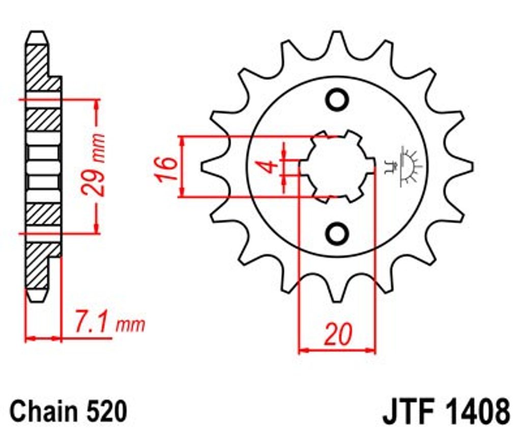 Priekšējais zobrats JT JTF 1408-15 15T, 520