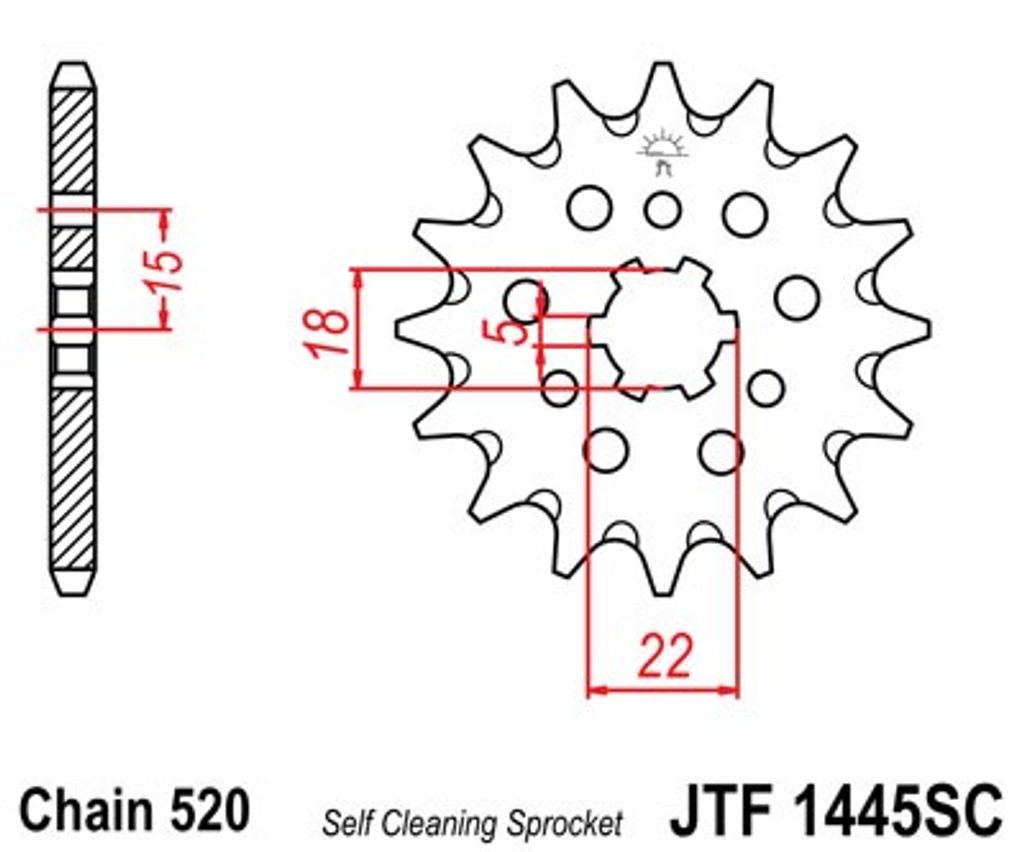 Priekšējais zobrats JT JTF 1445-12SC 12T, 520 Viegls pašattīrošs