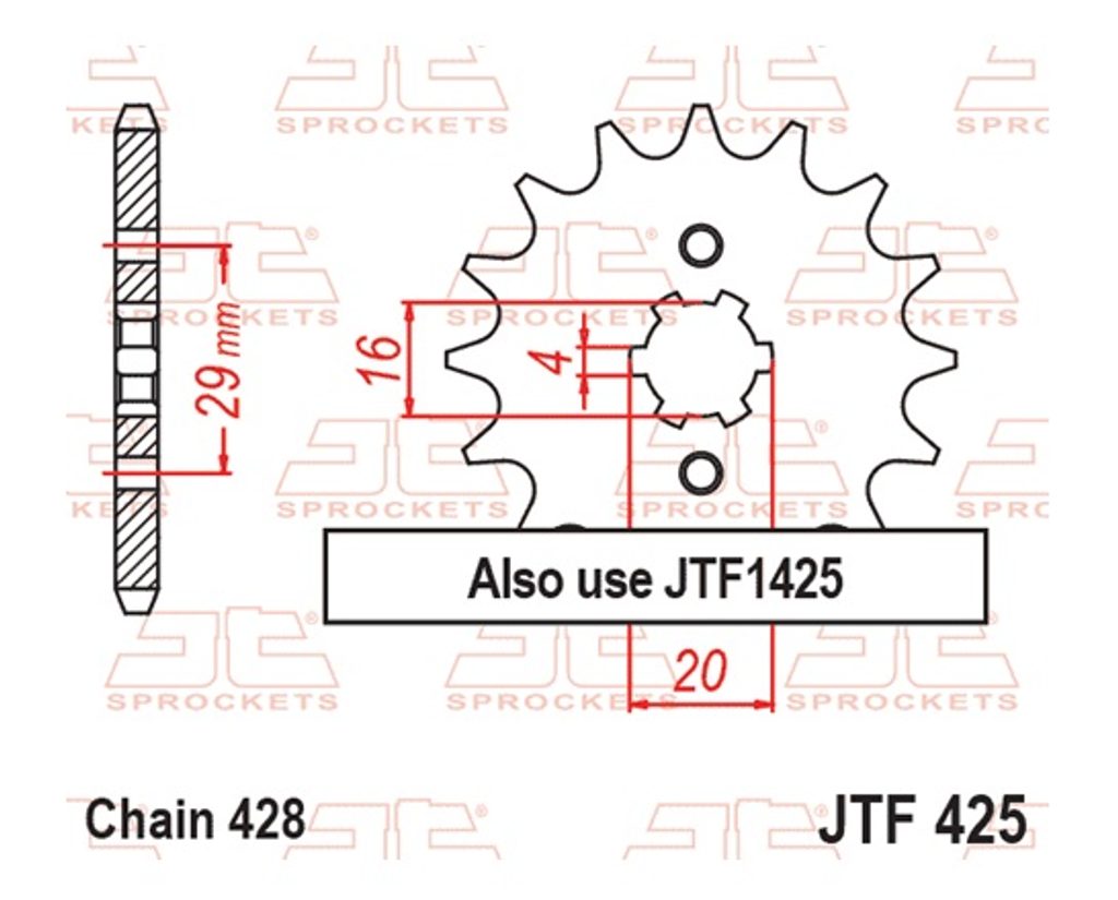 Priekšējais zobrats JT JTF 425-14 14T, 428