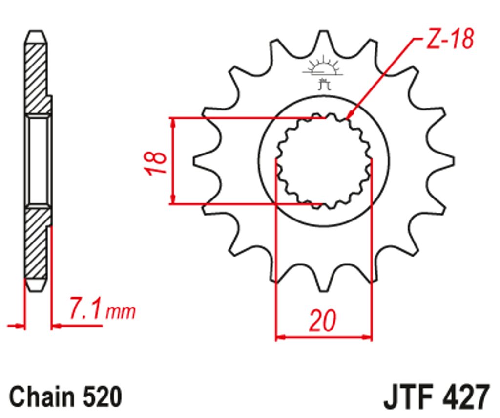 Priekšējais zobrats JT JTF 427-13 13T, 520