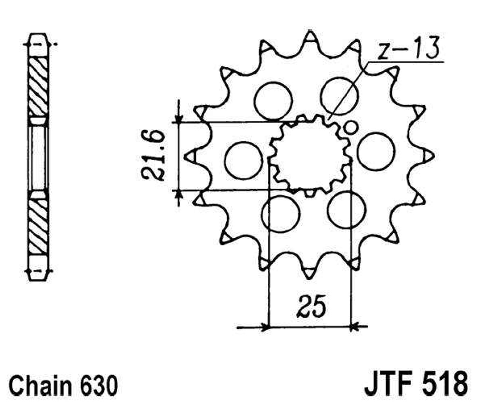 Priekšējais zobrats JT JTF 518-13 13T, 630