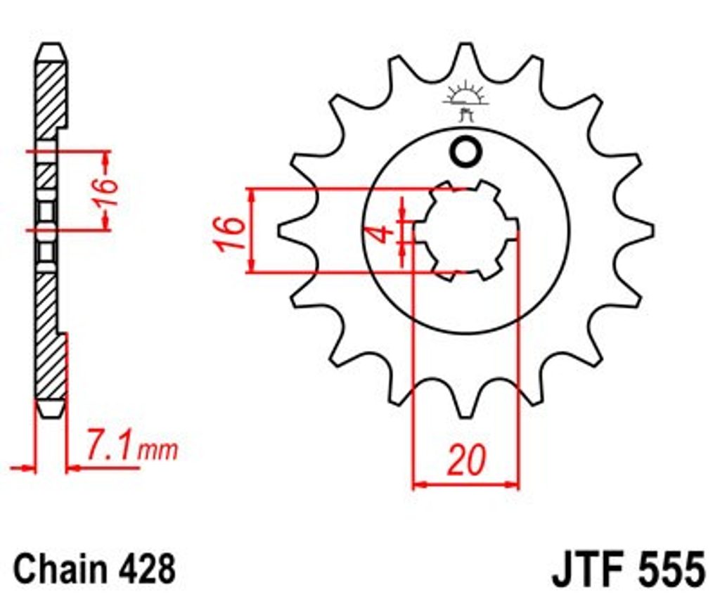 Priekšējais zobrats JT JTF 555-15 15T, 428