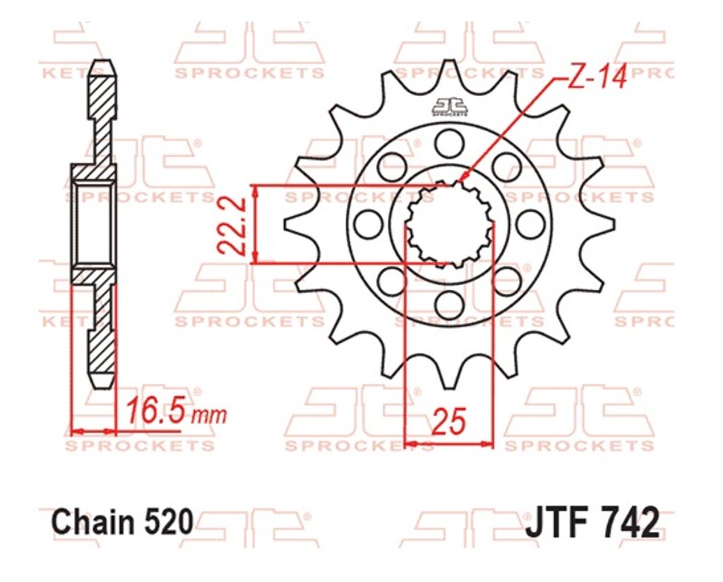 Priekšējais zobrats JT JTF 742-15RB 15T, 520 piedziņas gumijas